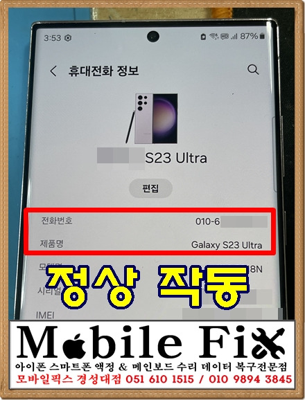 수리 후 유심이 정상적으로 작동하는 모습입니다.